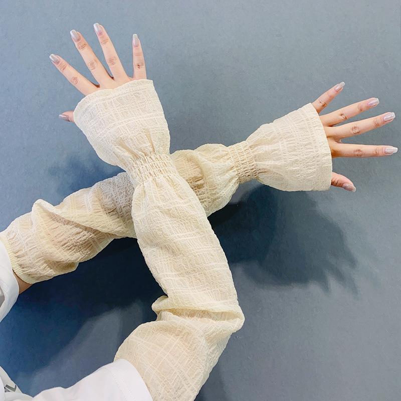 Летние женские тонкие шифоновые плиссированные пышные солнцезащитные рукава с длинными рукавами из ледяного шелка, уличный солнцезащитный козырек с защитой от УФ-лучей, рукава для вождения