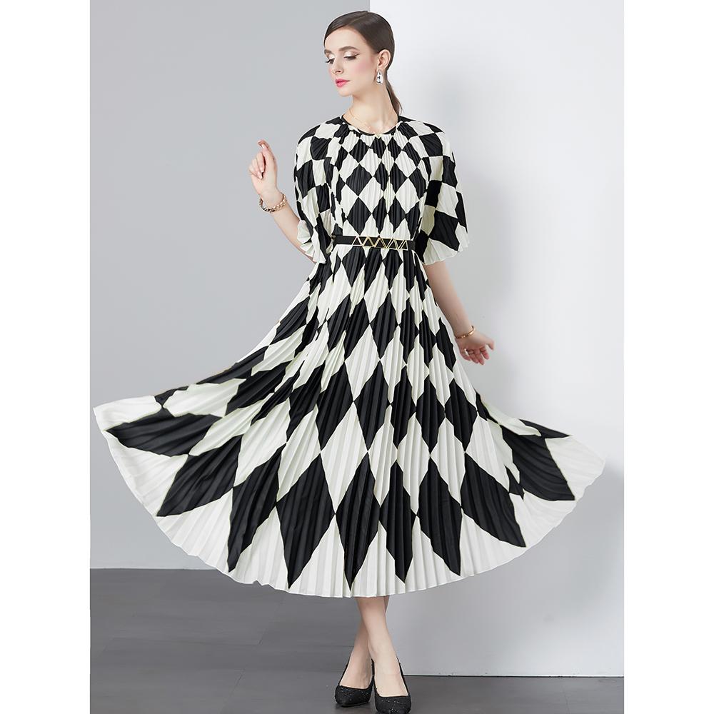 Летние женские элегантные клетчатые принты, свободные длинные длинные макси-пляжные платья с поясом One Size чёрный