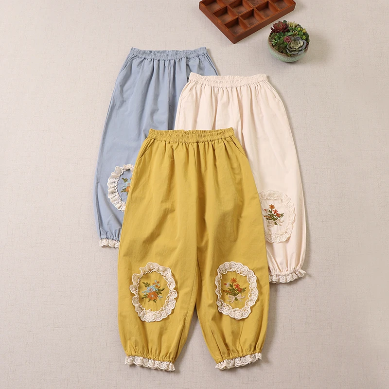 Летние милые женские брюки с вышивкой, эластичная резинка на талии, укороченные брюки Duobo07