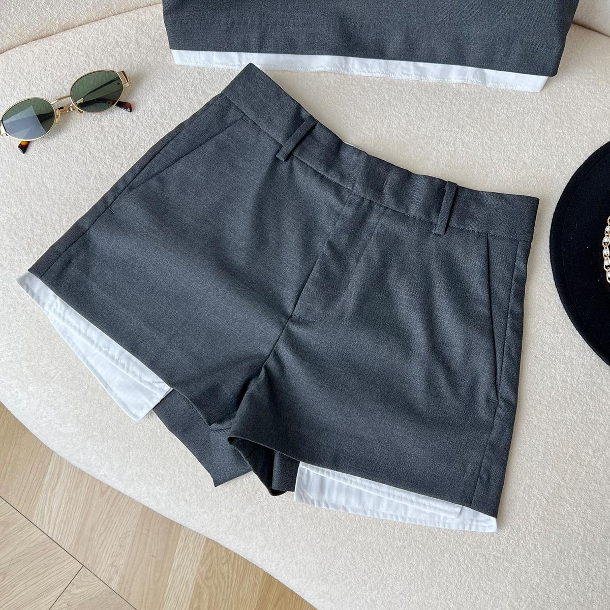 Летние милые крутые шорты с высокой талией А-силуэта в стиле колор-блок Extra Small серый