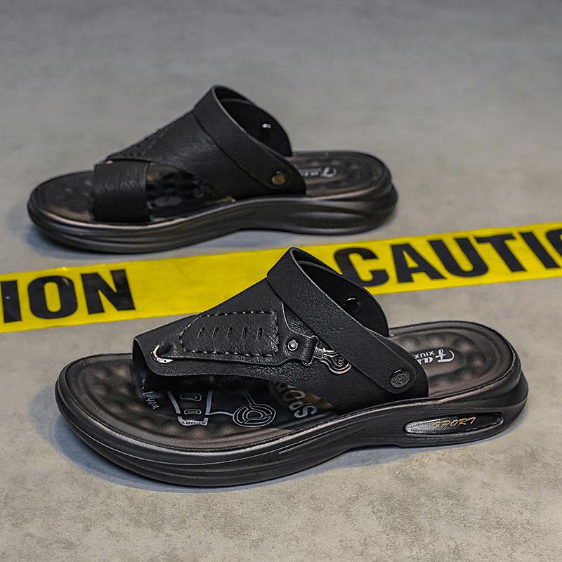 Летние мужские сандалии, нескользящие шлепанцы для мужчин, пляжные сандалии, кожаные тапочки на мягкой подошве, мужские повседневные сандалии для отдыха на открытом воздухе, большой размер 38