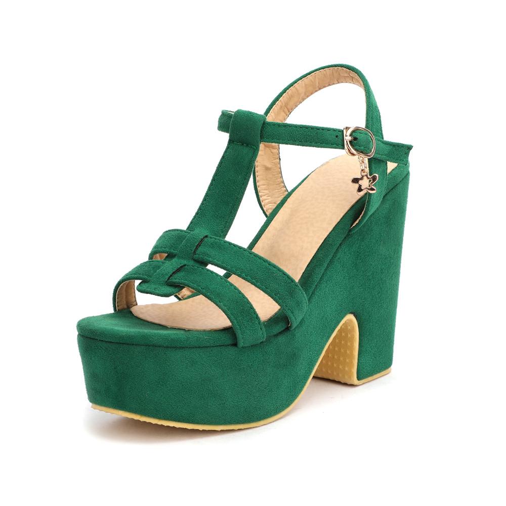 Летние новые босоножки на платформе женские туфли на толстом высоком каблуке туфли-лодочки на танкетке из флока модные босоножки De Mujer 34-43 зеленые 36 зелёный