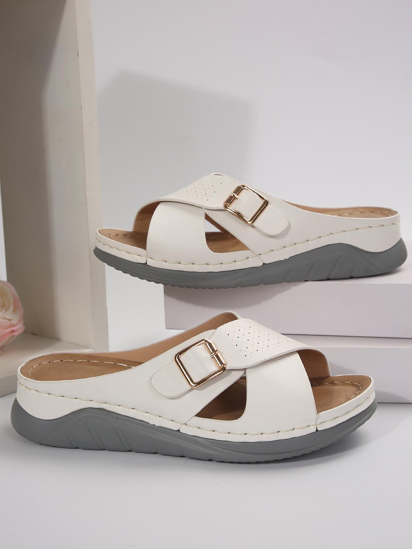 Летние новые тапочки на толстой подошве с наклонным каблуком, с перекрестными ремешками и пряжкой в форме рыбьего рта, классные тапочки, импортные полые пляжные тапочки большого размера 36 белый