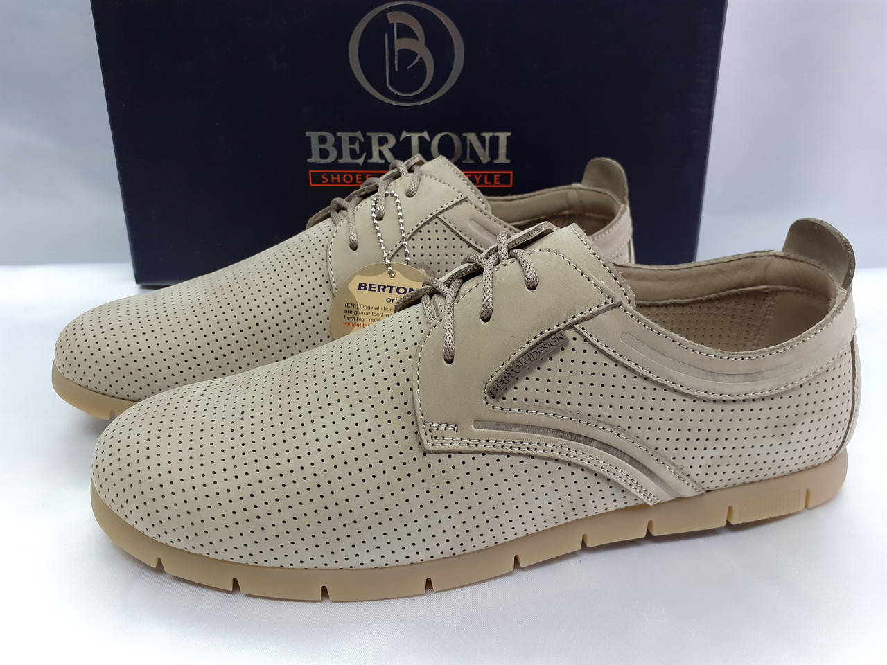 Летние песочные мокасины на шнурках из нубука Bertoni 41, 27