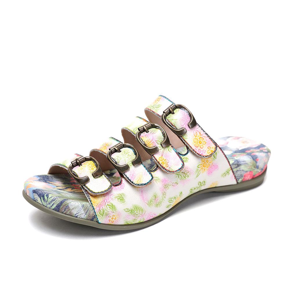 Летние пляжные тапочки Johnature, шлепанцы из натуральной кожи с ручной росписью в стиле ретро, женская обувь на мягкой подошве 40 разноцветный