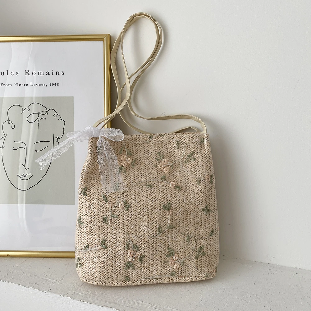 Летние повседневные тканые модные кружевные женские сумки через плечо с цветочным принтом, повседневные однотонные женские маленькие сумк...