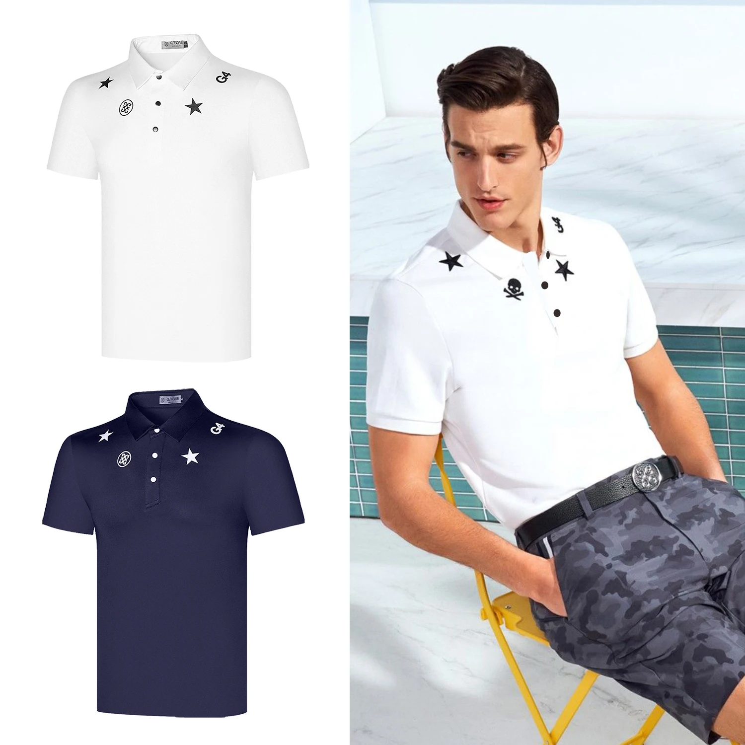 Летние рубашки для гольфа, мужская спортивная стрейчевая быстросохнущая рубашка-поло с коротким рукавом