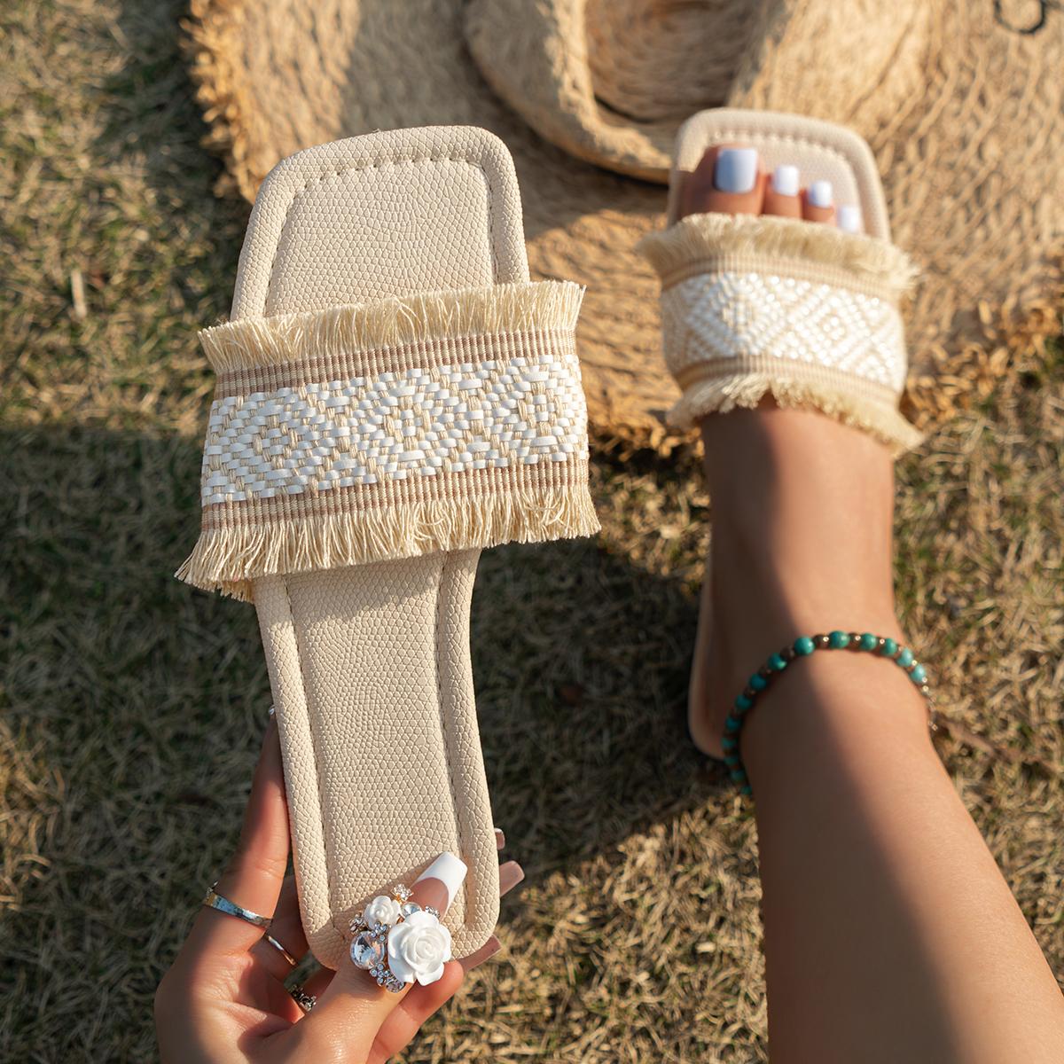 Летние тапочки, женские роскошные уличные пляжные шлепанцы на плоской бахроме, женские сандалии, тканые дизайнерские шлепанцы, женская обувь, размер 43 43