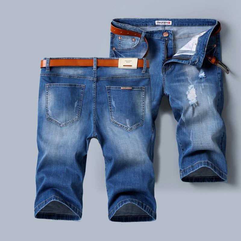 Летние тонкие мужские эластичные перфорированные джинсы, мужские корейские свободные прямые повседневные брюки с разрезом, мужские 36