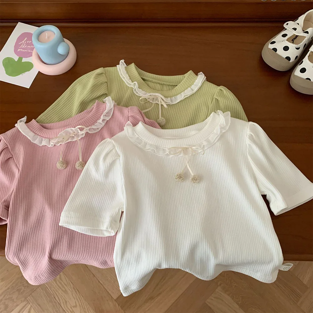 Летние топы для девочек, однотонная модная детская одежда на день рождения, детские футболки