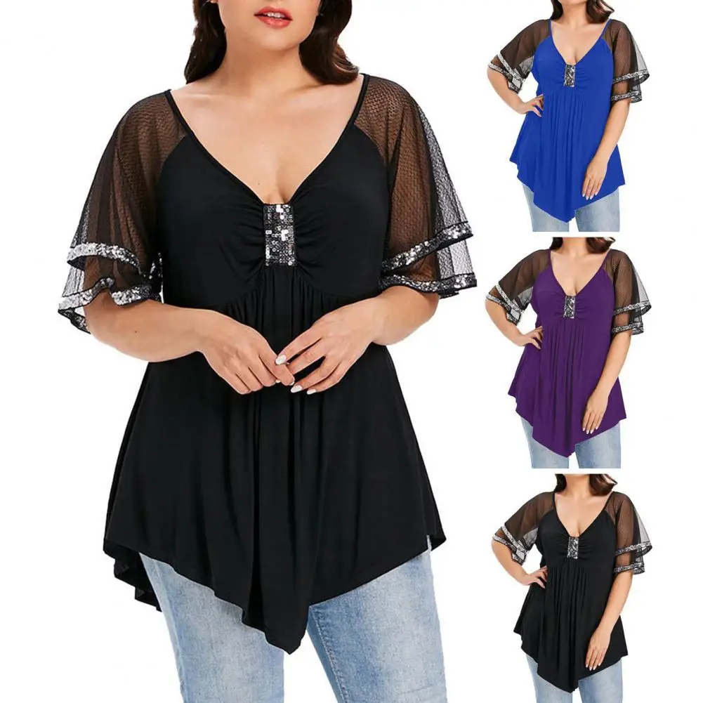 Летние топы, стильная быстросохнущая женская футболка, женская футболка большого размера с вышивкой и блестками, уличная одежда