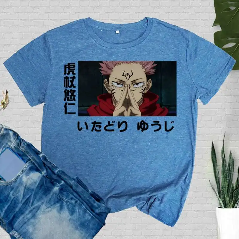 Летние футболки в стиле Харадзюку, аниме, ююютсу, кайзен, футболка Itadori Yuji, топы с мультяшным принтом, футболка Gojo, женская футболка, футболка ...