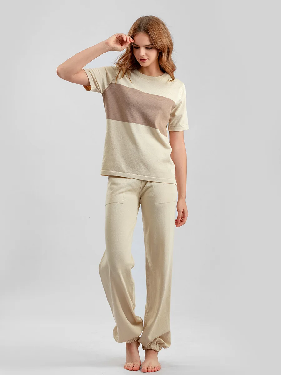 Летний вязаный комплект из двух предметов: футболка и брюки