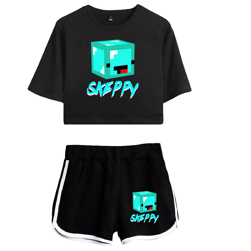 Летний женский/женский комплект из двух предметов с принтом Skeppy и шорты с эластичным поясом