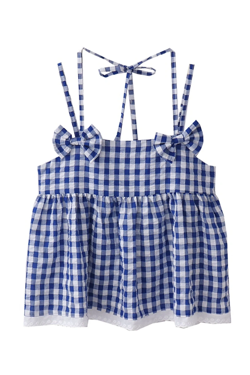 Летний кавайный укороченный Топ Pure Desire для женщин 2022 клетчатый винтажный милый кружевной бандажный корсет на бретелях с бантом женская сек...