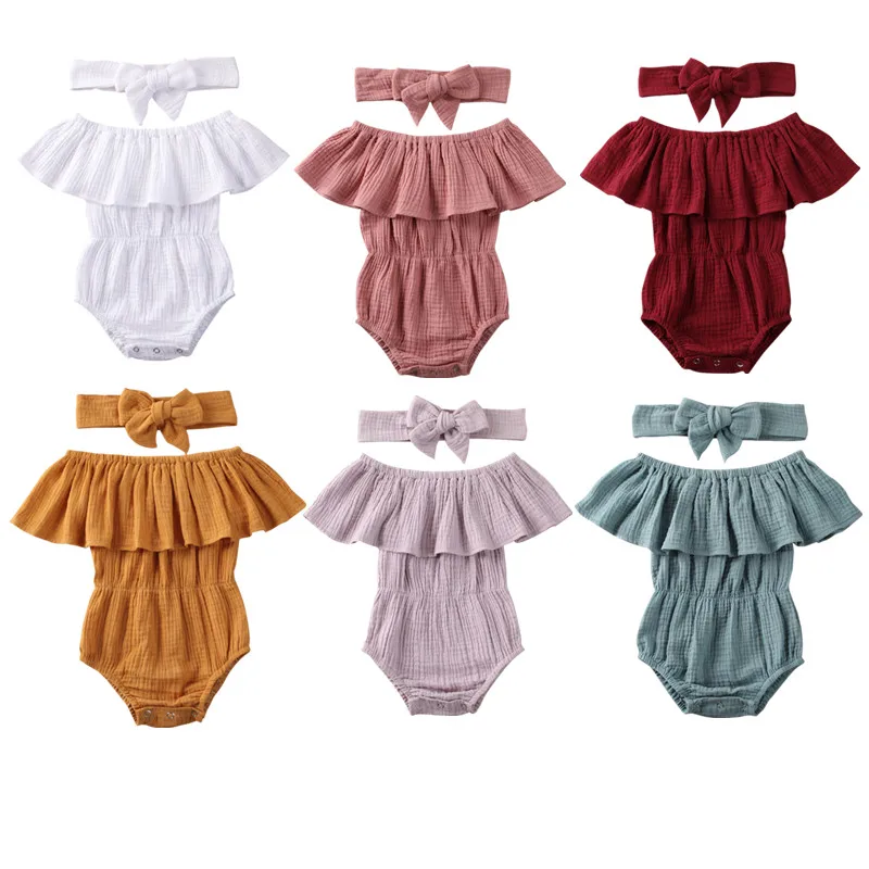 Летний комбинезон с открытыми плечами для новорожденных, из хлопка и льна