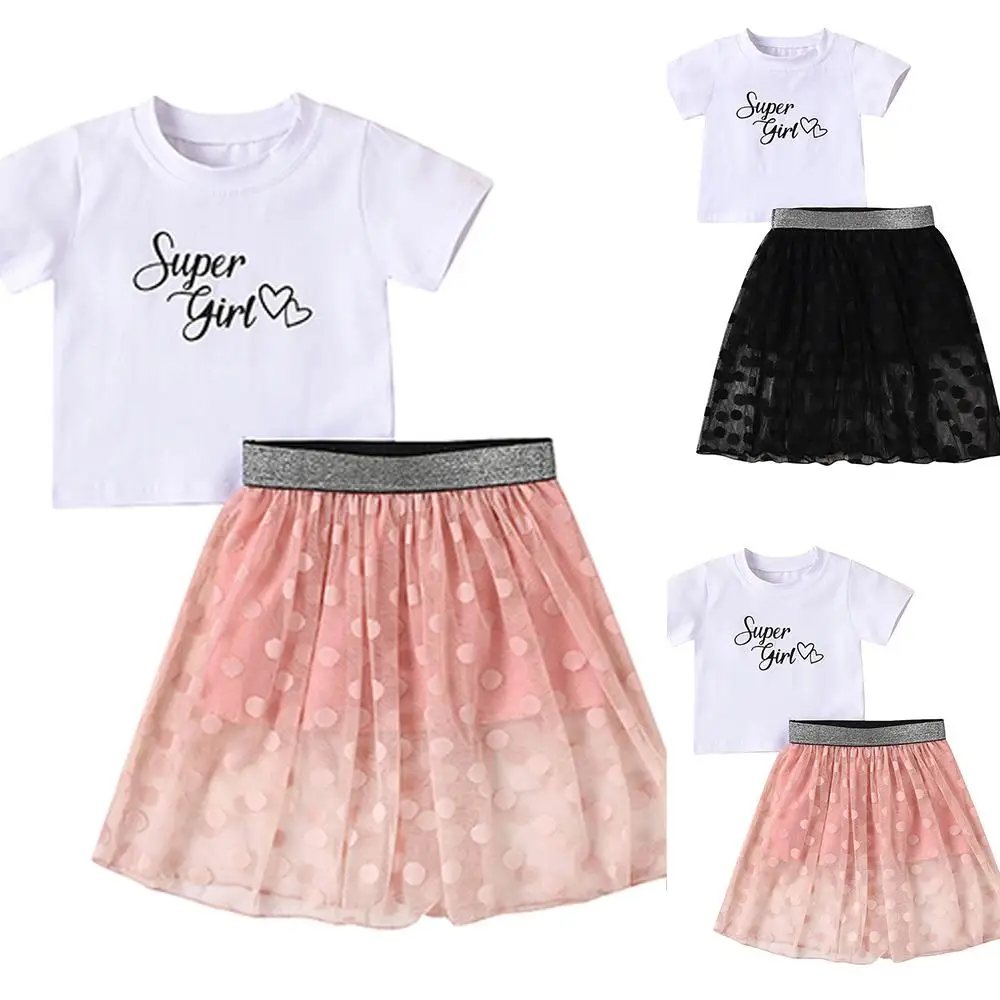 Летний комплект детской одежды с коротким рукавом для маленьких девочек, праздничный повседневный комплект из двух предметов