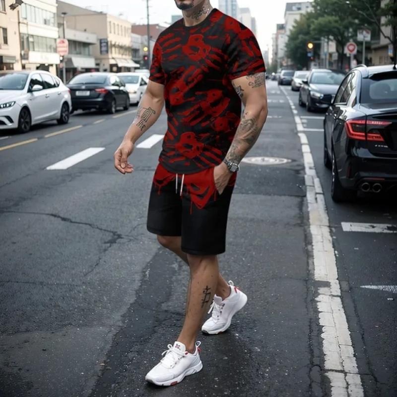 Летний мужской комплект из 2 предметов с 3D рисунком, мягкая и удобная футболка с круглым вырезом и повседневные шорты, летний комплект, уличная мужская одежда 6XL