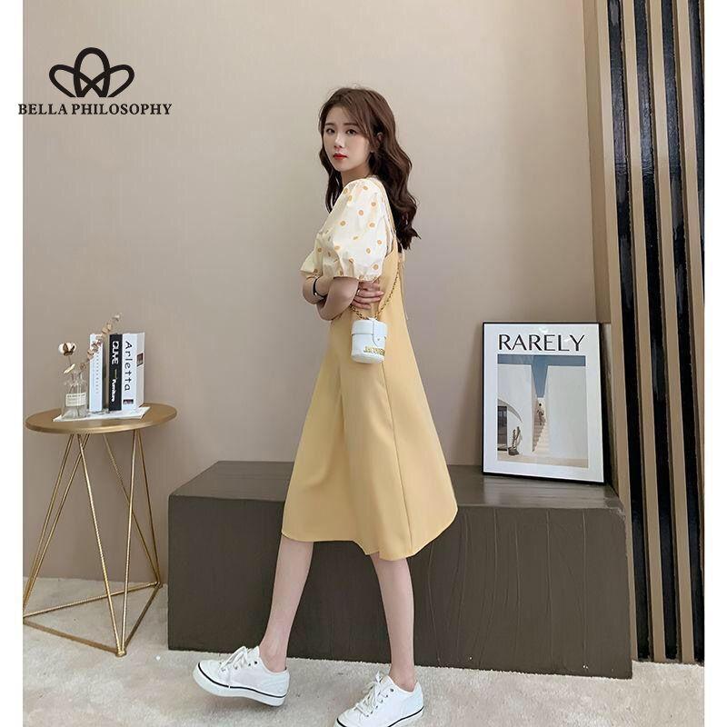 Летний новый стиль, нежная элегантная юбка в стиле ретро, комплект из двух предметов, топ-поло с короткими рукавами, однотонная юбка-прядь, комплект из двух предметов XXL жёлтый