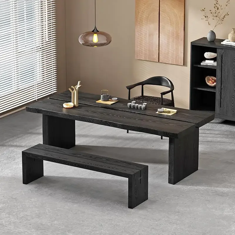 Чайный столик из массива дерева в стиле ретро, черный карбонизированный чайный столик для балкона, обеденный стол, встроенный тихий обеденный стол из ясеня