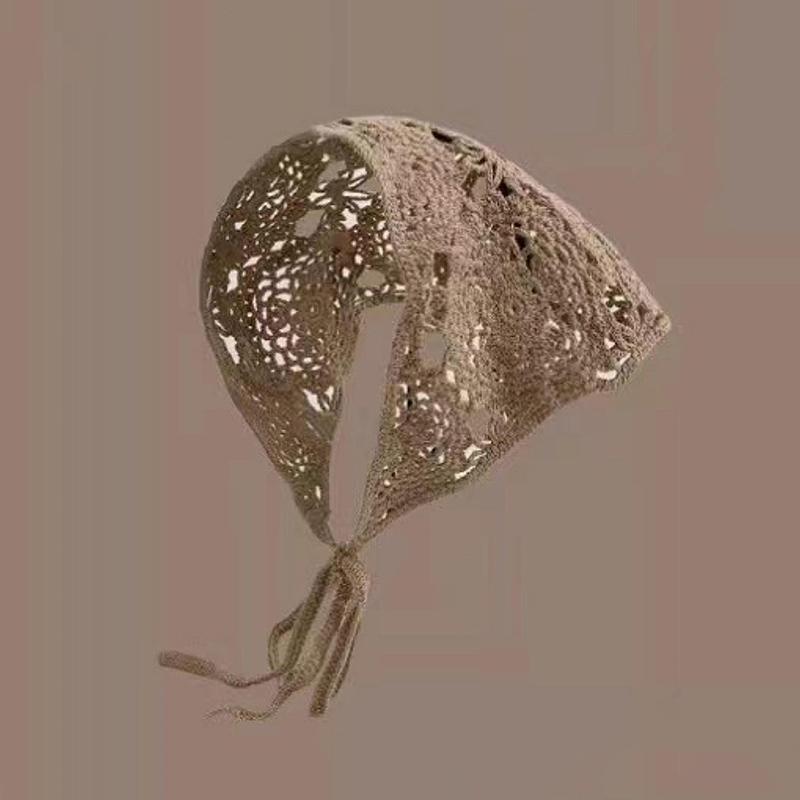 Летний сладкий ретро однотонный ажурный вышитый трикотажный треугольный тюрбан для женщин коричневый