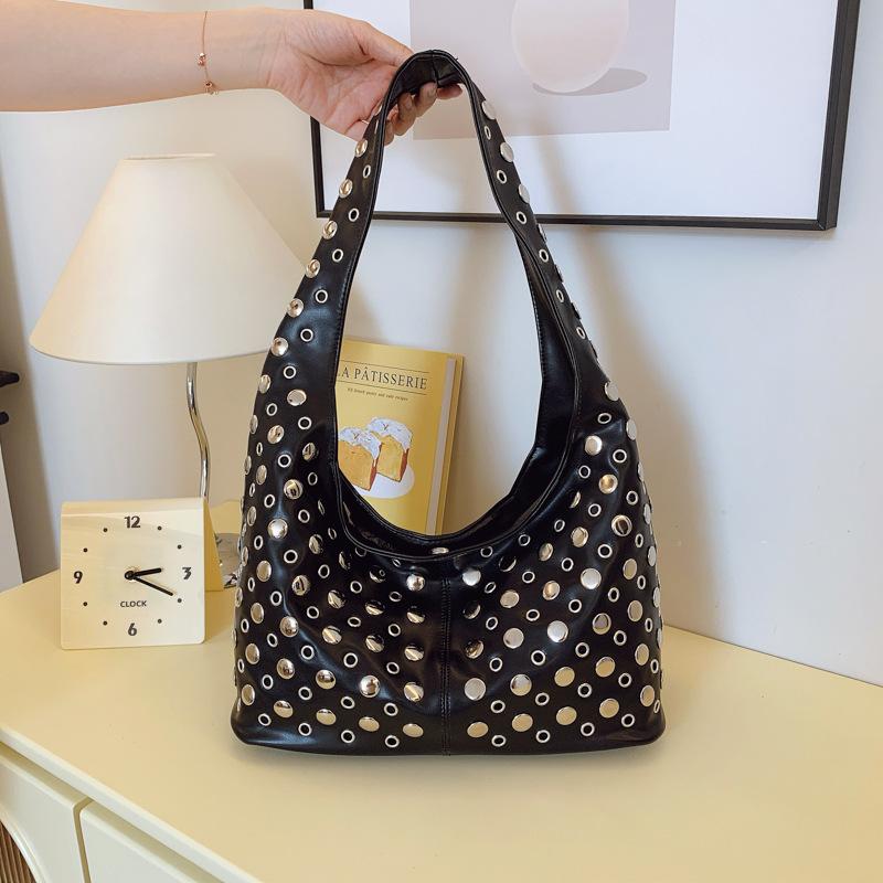 Летний тренд Панк стиль Клепки Премиум ощущение Сумка-ведро Модная женская подмышечная сумка на плечо чёрный