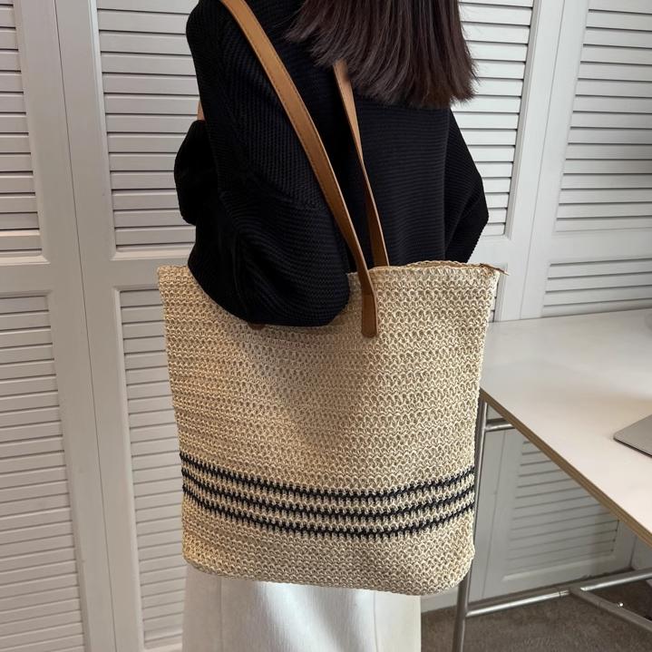 Летняя Новая Плетеная Сумка Женская Повседневная Дорожная Сумка Через Плечо Сумка-Тоут Модная Сумка without tassel кофейный
