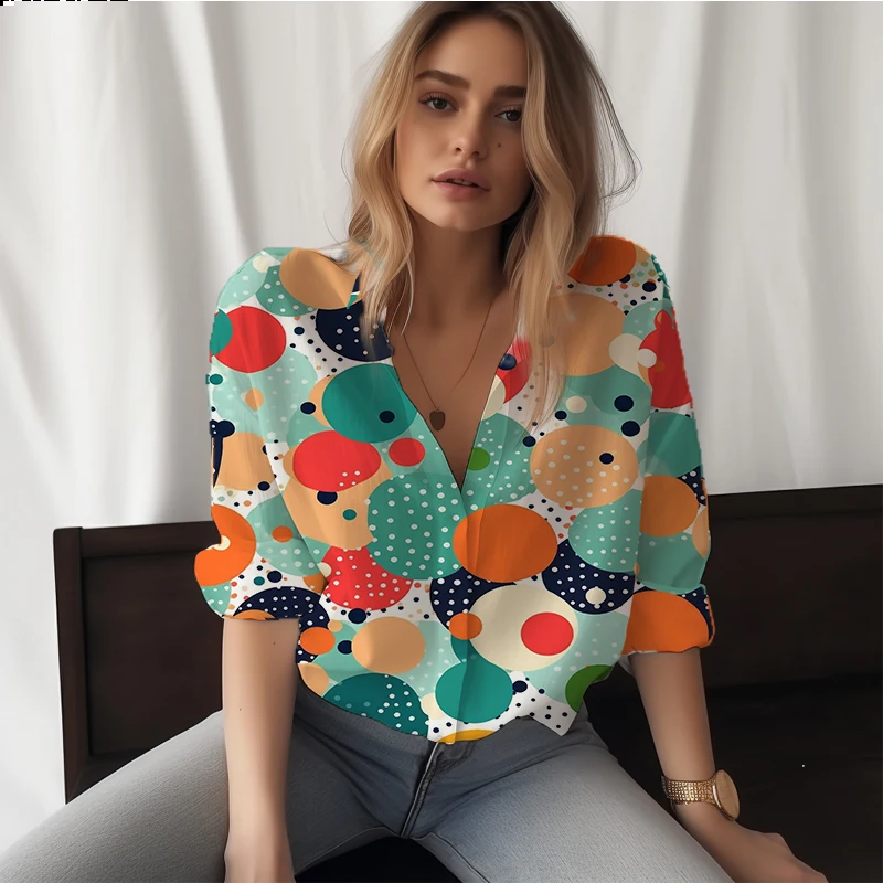 Летняя Новинка, женская рубашка в горошек, женская рубашка с 3D принтом, Повседневная стильная женская рубашка для отпуска, модная трендовая женская рубашка