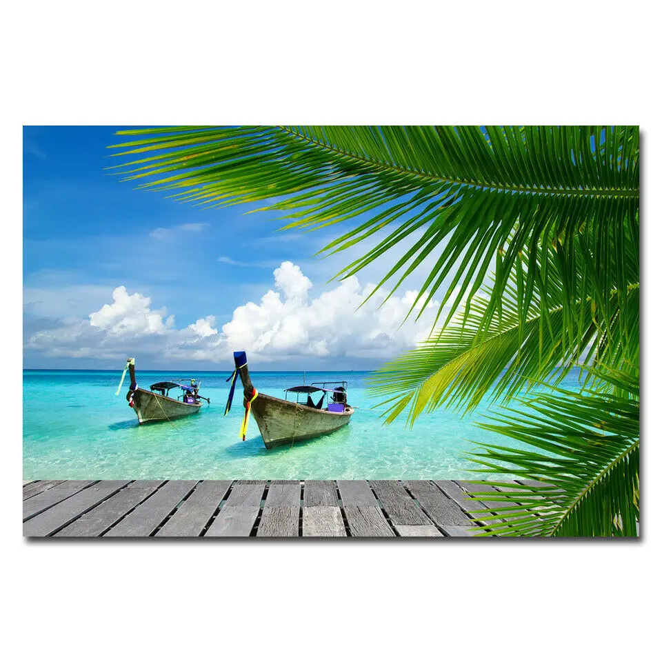 Летняя Пляжная Пальма лодка морской пейзаж Искусство Печать Шелковый плакат домашний декор стен
