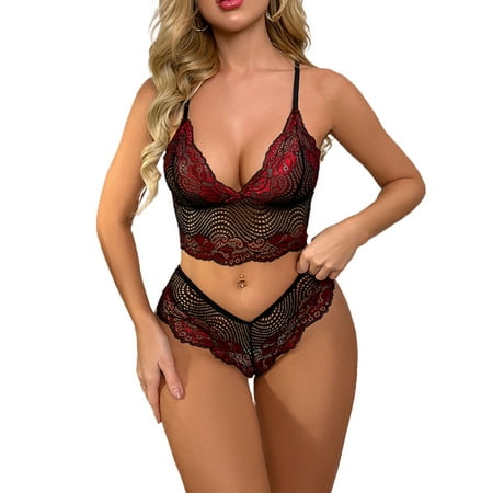 Pfysire Women Sexy Lace Lingerie Two-Piece Erotic Underwear Sleepwear Bra Briefs Set