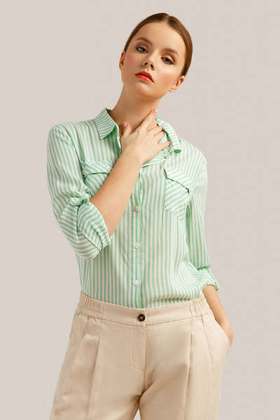 Летняя блузка-рубашка из вискозы в полоску Finn Flare S19-140116-513 с длинным рукавом 2XL, Салатовый