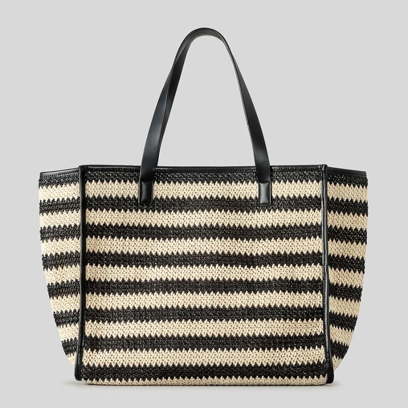 Летняя большая вместительная соломенная сумка ручной работы, полосатая пляжная сумка для отдыха на море, модная сумка через плечо хаки