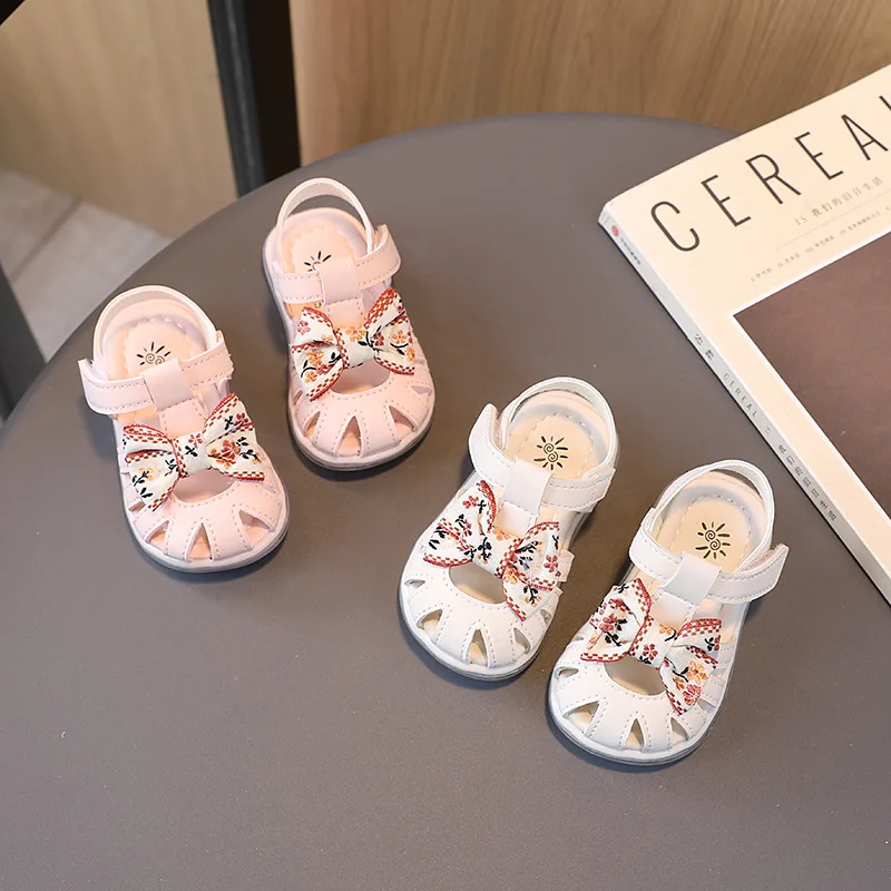 Летняя детская обувь для прогулок, сандалии для девочек с мягкой подошвой, детские сандалии с цветочным бантом и застежкой-липучкой, модная повседневная детская обувь с вырезами 2023