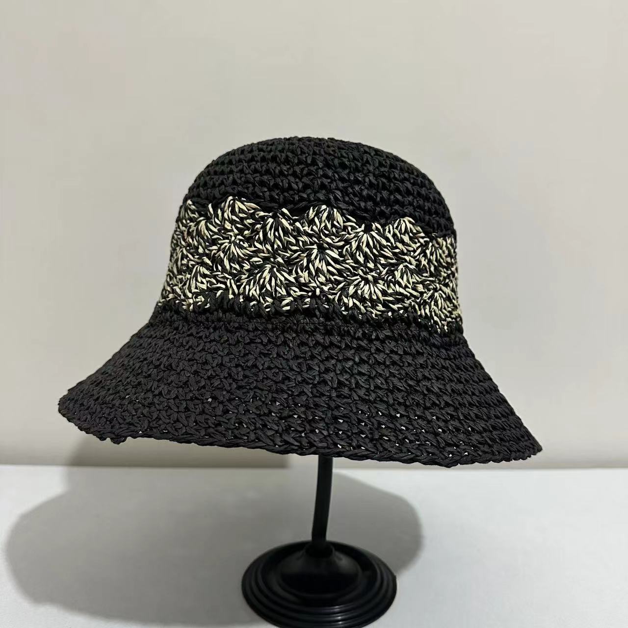 Летняя дышащая соломенная шляпа-ведро с большими полями для защиты от солнца, для отдыха на море, соломенная шляпа M(56-58cm) чёрный