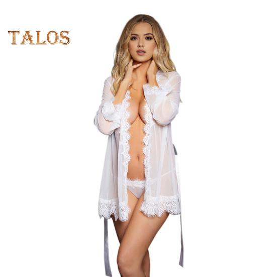 Летняя женская ночная рубашка с завязывающимся поясом, тонкая прозрачная сетка с V-образным вырезом, чувственная ночная рубашка с кружевной отделкой, ночная рубашка для спальни, свадебное платье для медового месяца L белый