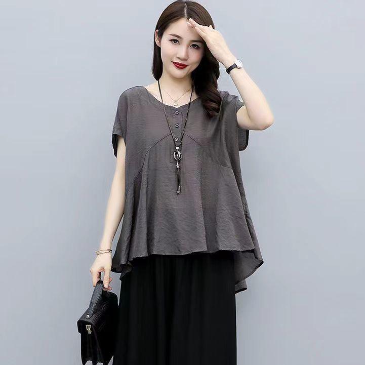 Летняя женская рубашка из хлопка с короткими рукавами и V-образным вырезом в корейском стиле с широким сосновым топом, модная, уменьшающая возраст, универсальная, тонкая рубашка XL темно-коричневого
