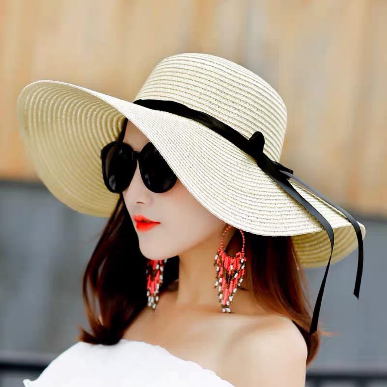 Летняя женская соломенная шляпа с большими полями для выхода на улицу, солнцезащитная шляпа от солнца в корейском стиле M(56‑58cm)