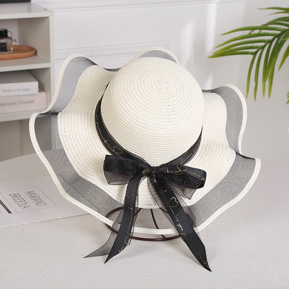 Летняя женская соломенная шляпа с большим бантом, портативная складная праздничная пляжная солнцезащитные козырьки, однотонная женская козырек от солнца ручной работы, кепка B03