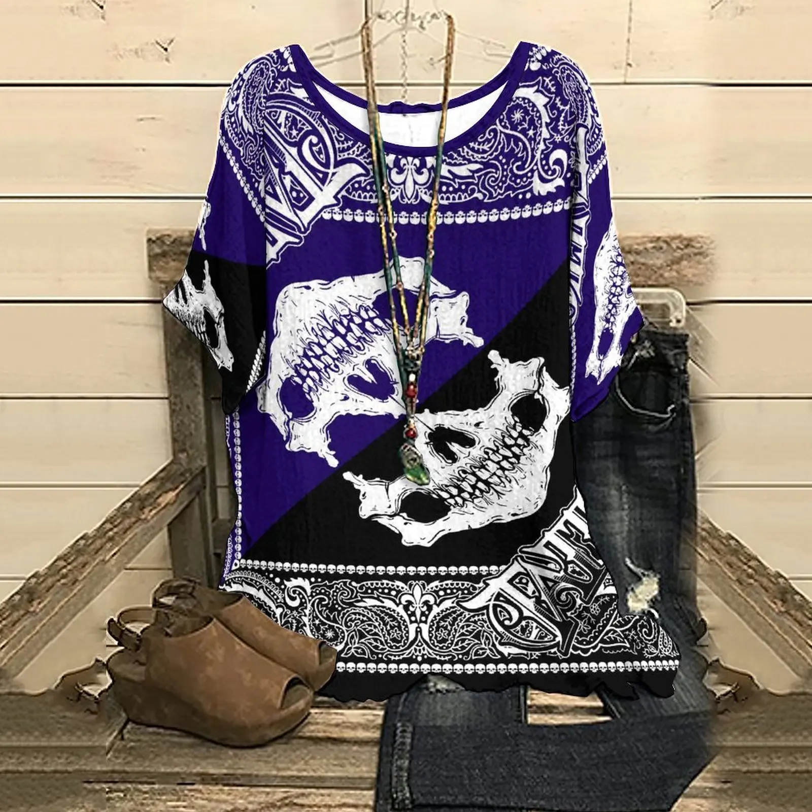 Летняя женская футболка с рукавом до локтя, модный топ с принтом черепа, футболка