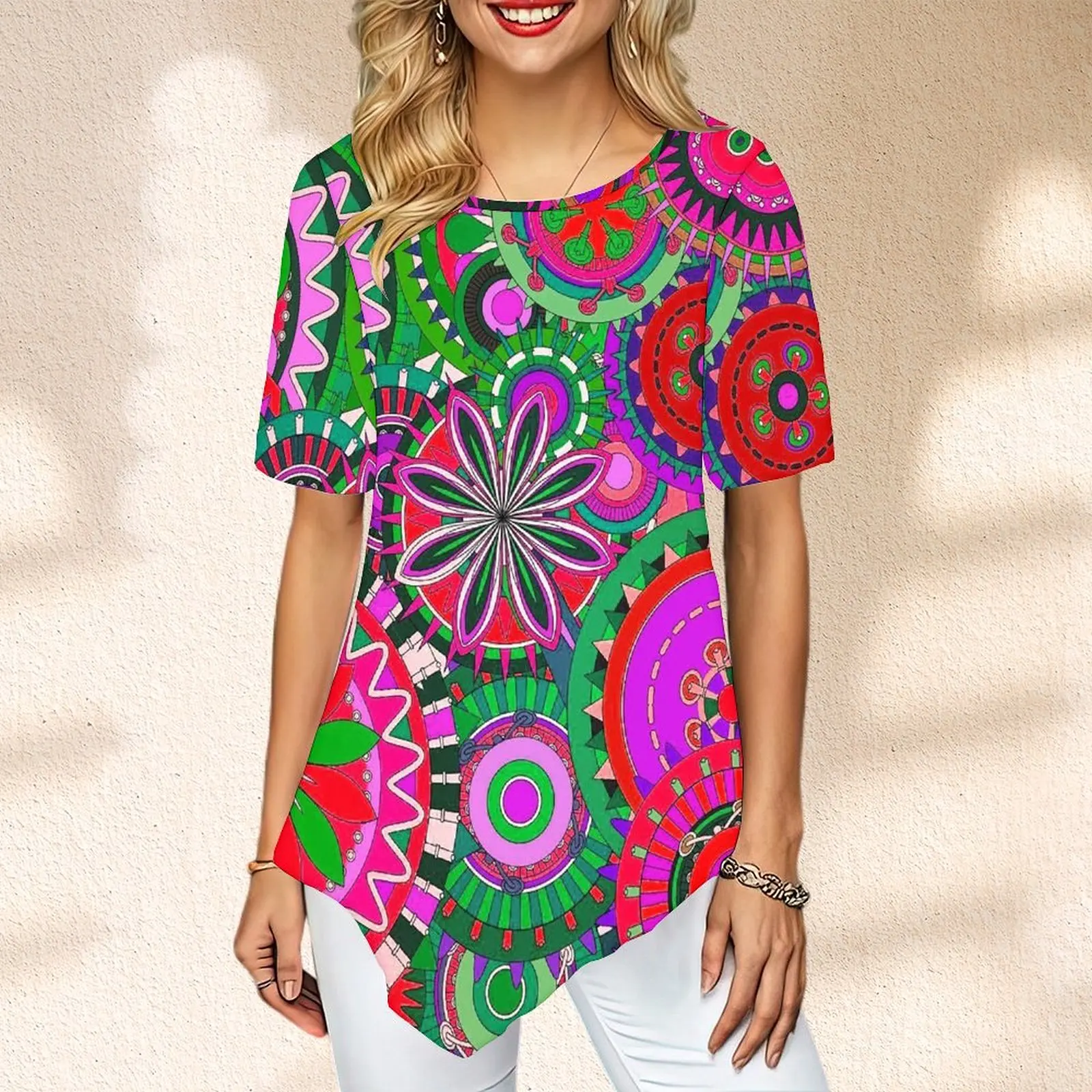 Летняя женская футболка с цветным принтом Мандала футболка с коротким рукавом