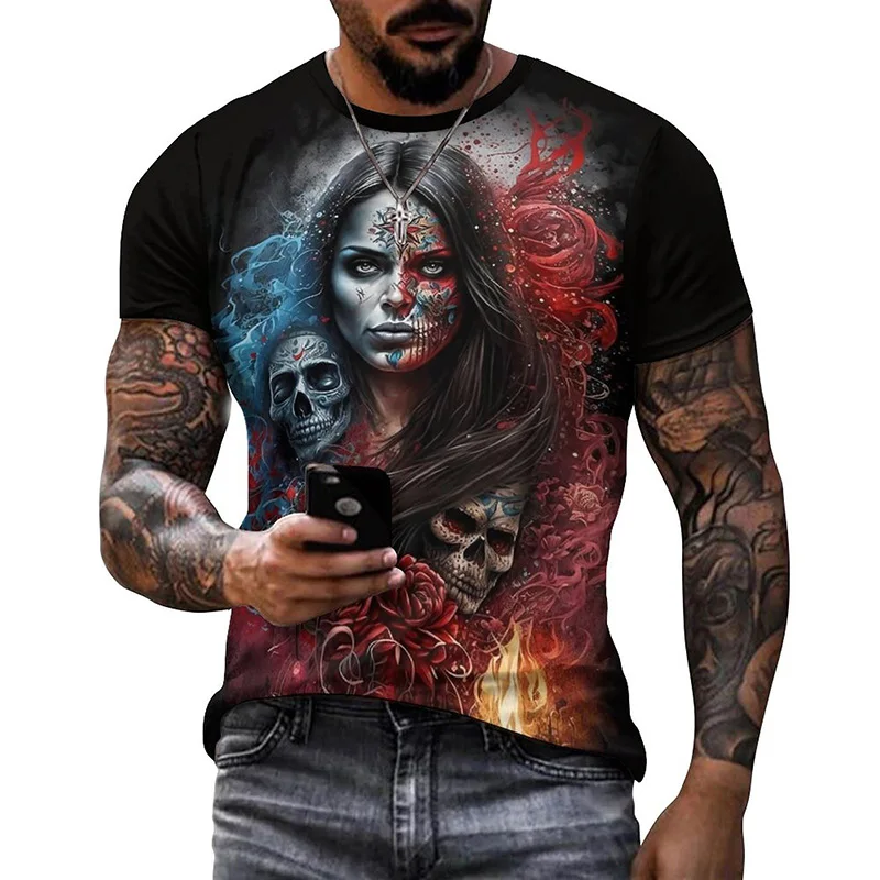 Летняя женская футболка с 3D рисунком черепа, футболка на Хэллоуин, футболка на Мексиканский день мертвецов, ужасный стиль для мужчин, праздничный наряд, подарок