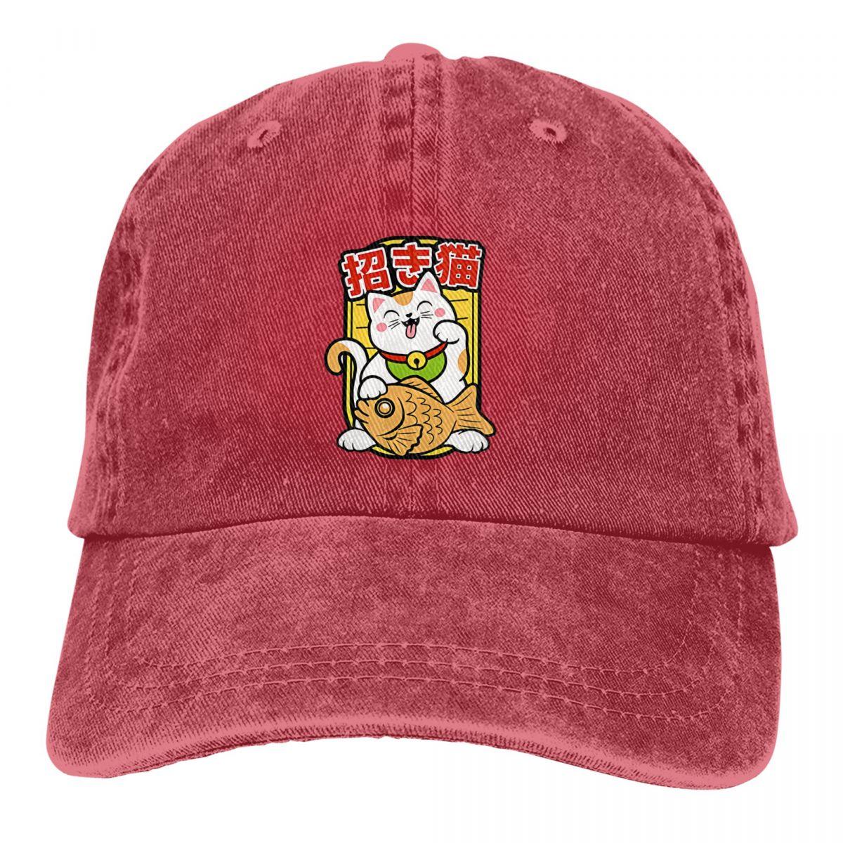 Летняя кепка с солнцезащитным козырьком Maneki Neko Taiyaki Lucky Cat With Fish Кепки в стиле хип-хоп Ковбойская шляпа Козырные шляпы One Size