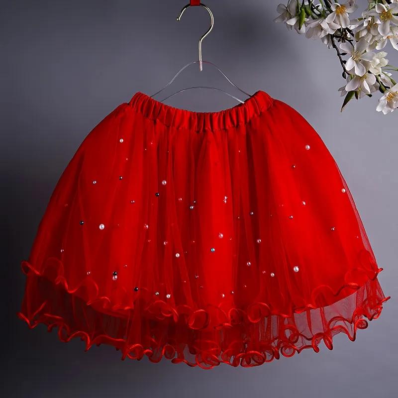 Летняя корейская версия, сетчатая короткая юбка, универсальная пышная юбка для танцев для девочек 150 красный