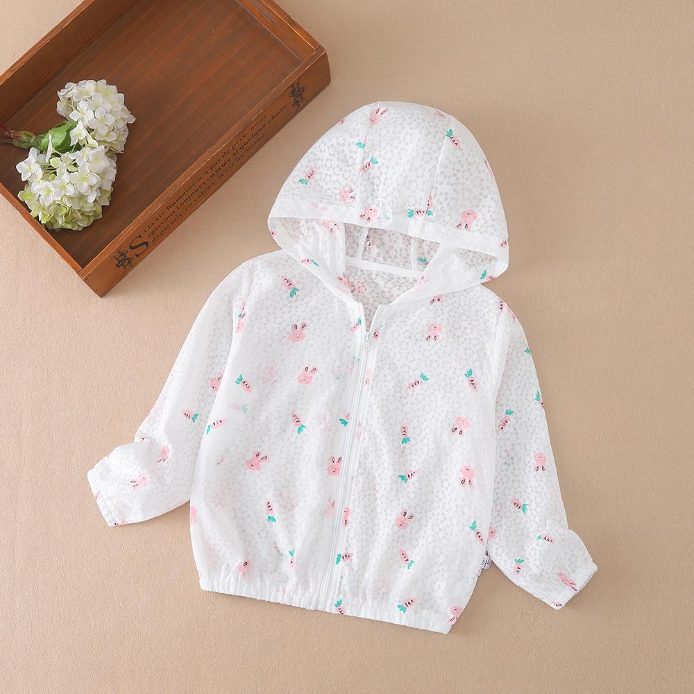 Летняя куртка с капюшоном для маленьких девочек, новинка 2024 года, легкая защита от солнца, милая детская одежда с мультяшным принтом для От 2 до 6 лет