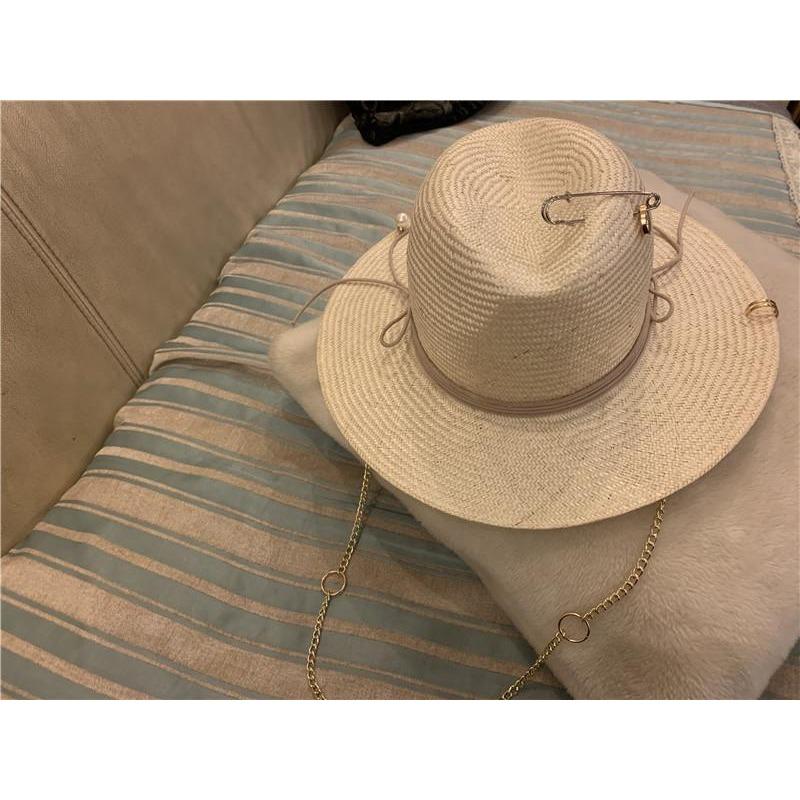 Летняя льняная булавка из сизаля ручной работы с жемчужной пуговицей и золотой цепочкой, женская шляпа-федора, женская шляпа Panamjazz One Size