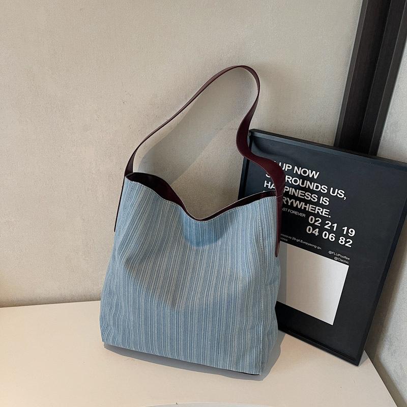 Летняя минималистичная полосатая свежая и простая сумка на одно плечо для поездок на работу светло-синий