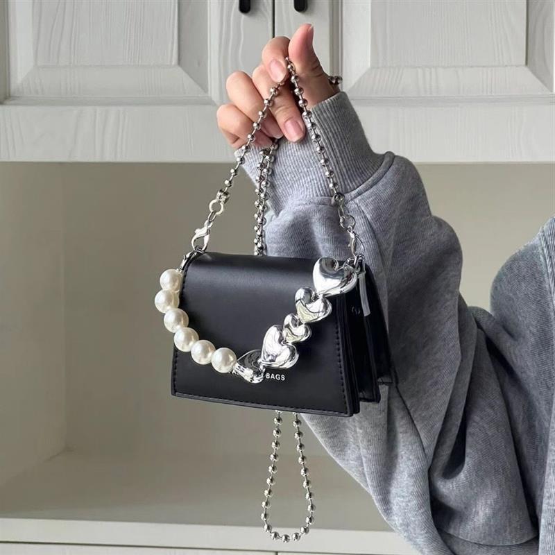 Летняя мини-сумка женская 2024 модная сумка через плечо с цепочкой премиум-фактуры нишевая универсальная маленькая квадратная сумка bag + shoulder strap чёрный