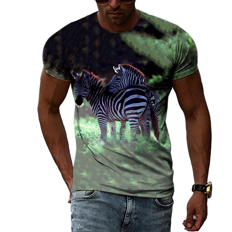 Летняя модная повседневная мужская футболка с круглым вырезом в уличном стиле с 3D-принтом в виде зебры Футболки мужские 6XL