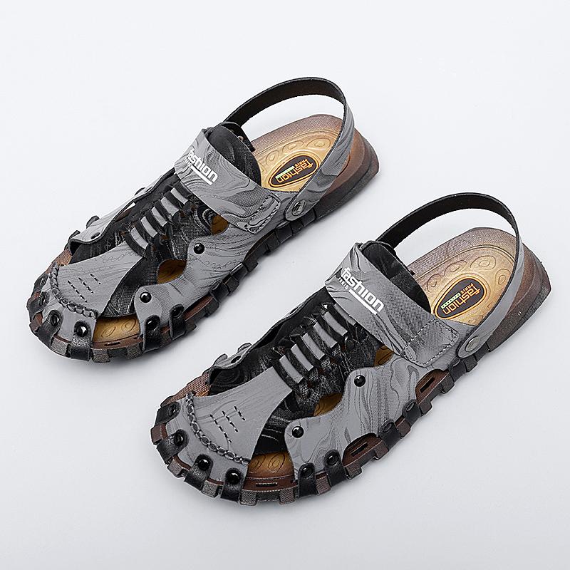 Летняя мужская новая повседневная обувь Baotou для отдыха на природе, пляжа, пешего туризма, треккинга, легкая дышащая воловья кожа, нескользящая мягкая подошва 47 темно серый