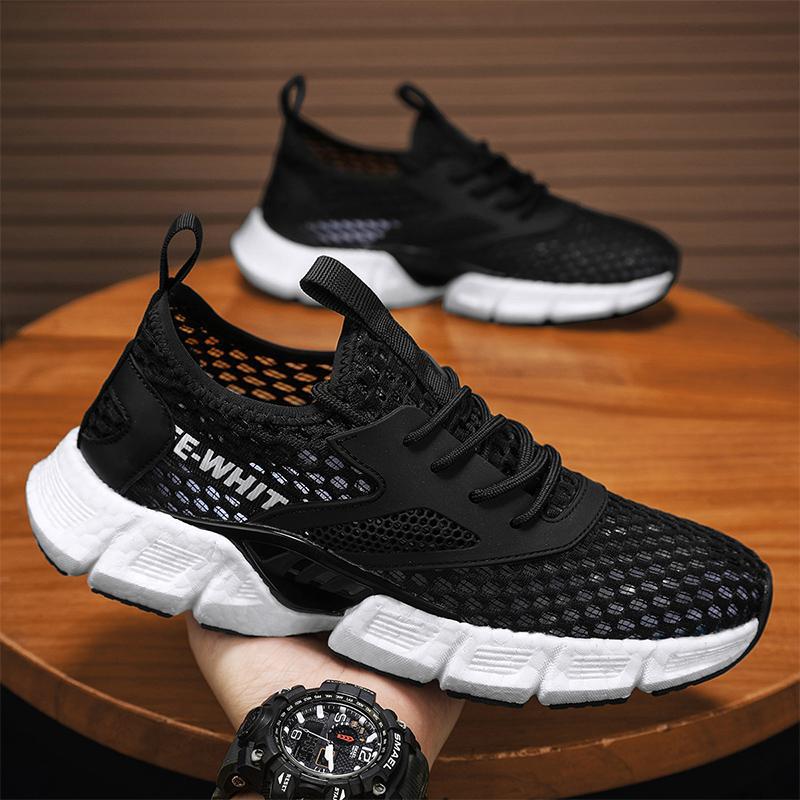 Летняя мужская обувь тонкая сетка полая сетчатая обувь спортивная повседневная для бега нескользящая легкая персонализированная модная обувь 44